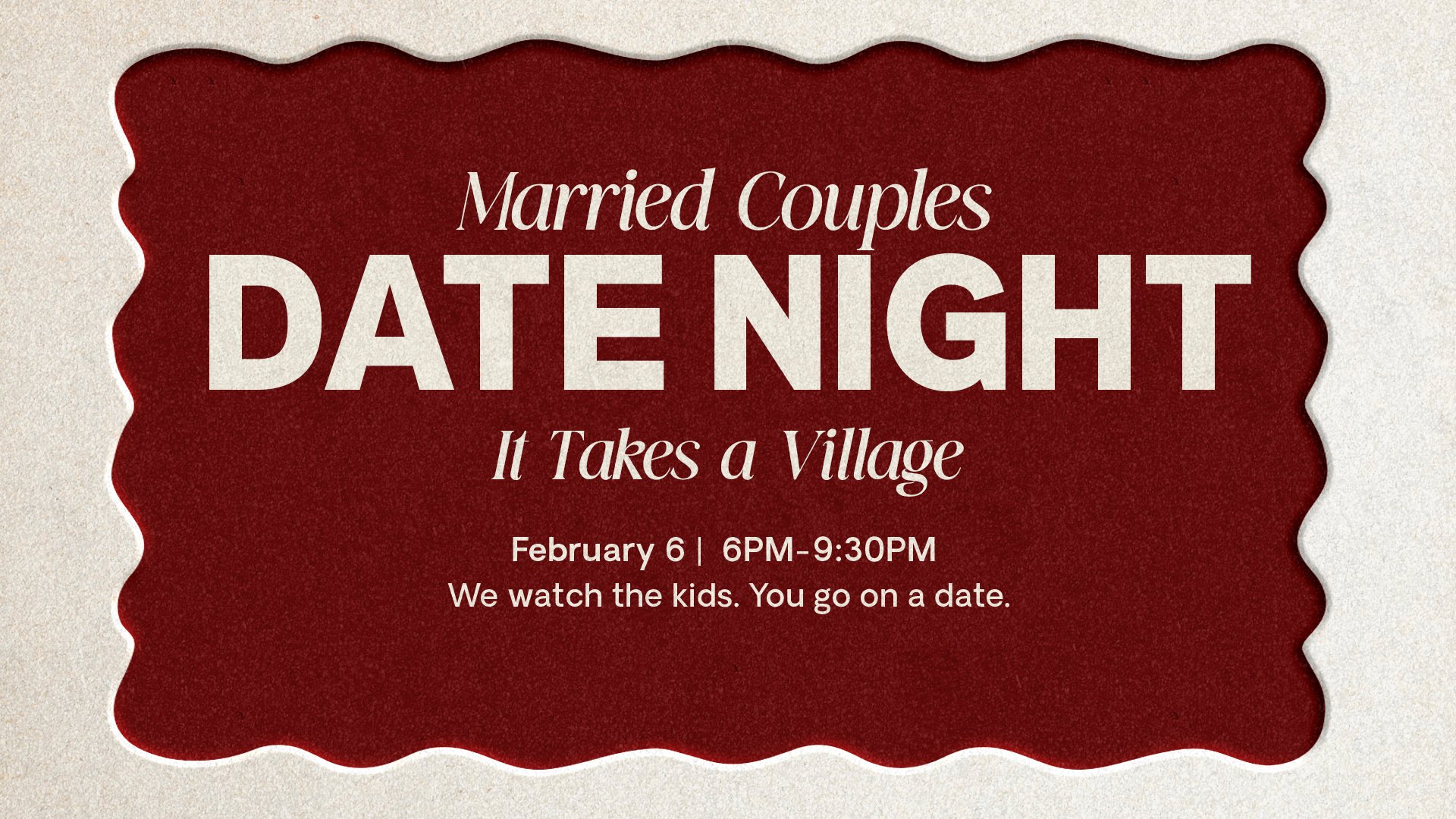 Married couples are invited to enjoy a date night while we provide free childcare.